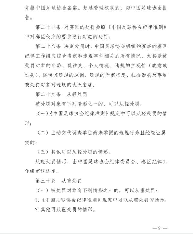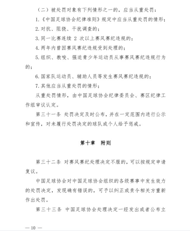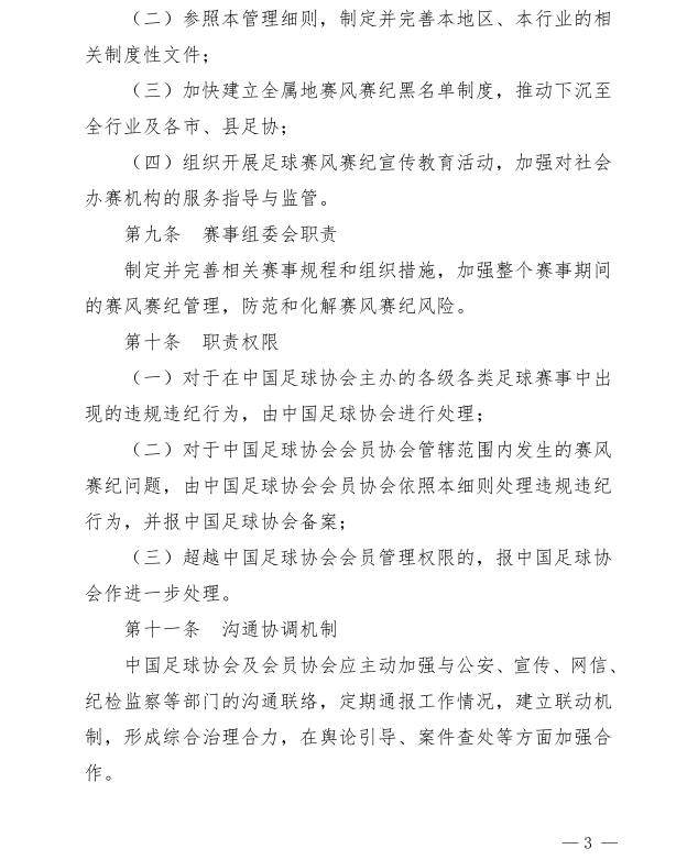 7月26日,中国足协公布《中国足球协会足球赛事活动赛风赛纪管理实施细则》,具体如下: